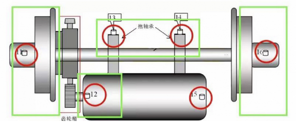 (2)运行中,机车乘务员应时刻注意轴报装置中各测点温度显示和报警提示。在途中站停车后,应对提示温度异常部位进行重点检查。走行部发生报警,须检查齿轮箱是否变形、鼓包等。