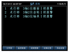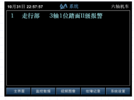 (4)轴承、齿轮、踏面I级报警时,注意报警类型和频度。持续的轴承报警,则在可能的情况下,应在前方停车站停车时进行相应的检查确认,并关注报警级别的发展趋势,在回段后及时提票由有关部门进行处理。