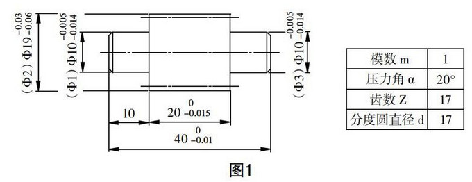 关键工艺点分析:齿轮内孔与端面垂直度的保证。齿轮内孔钻孔时必须在立式钻床上进行,用台钻或摇臂钻床钻孔无法保证垂直度的要求,如果没有立式钻床可以改在车床或数控铣床上钻孔。钻孔前要打中心孔,用Φ9.8钻头钻孔,然后经过粗铰和精铰达到尺寸精度。
