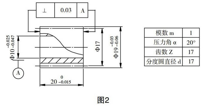 我们把齿轮泵的主动轴齿轮和从动轴齿轮的一体式设计改为分体式设计(见图2、图3),即通过分别加工齿轮和齿轮轴,然后再用热套的方法把他们装配在一起。在这个工艺中Z主要的问题是过盈装配以后能够保证齿轮轴和齿轮传递的扭矩,即在齿轮泵输出压力波动的情况下也能保证齿轮泵正常工作。小型发动机的设计转速一般在1000转/分钟~6000转/分钟,我们设计齿轮油泵的工作压力Z高为2MP,按公式分别计算出齿轮轴和齿轮的过盈配合量。