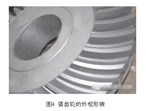 材料为20CrMnMo弧齿轮,为减速器组成部件,尺寸为φ330.94mm/φ60mm×56mm,外观形貌如图4所示,重量为27.6kg。热处理技术要求有效硬化层为1.2~1.6㎜(工艺加量0.4㎜,1.6~2.0㎜),齿轮表面硬度为58~62HRC,心部硬度为33~45HRC。热处理工艺过程:正火→调质→渗碳→高温回火→淬火→回火→二次回火→喷丸。其中: