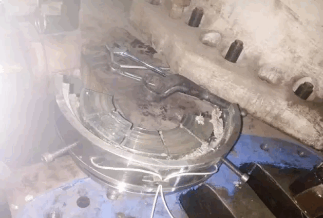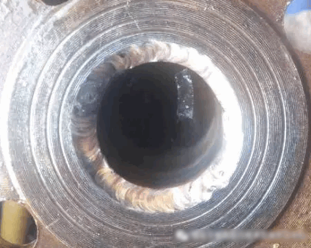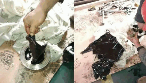 查看停机前的润滑油压0.34Mpa,故障跳机前油压0.41Mpa,根据这个现象判断油路有堵塞的地方,经过查找发现推力瓦进油管道被胶皮堵住(如图4和图5)。
