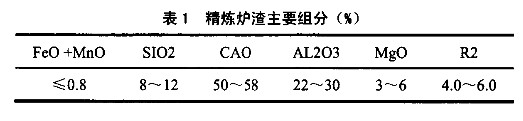 1)炉渣成渣速度快,前期即具有较好的流动性,加快了钢包顶渣与钢水的反应能力;