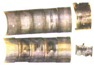 (2)主轴瓦下盖的两端面晃动,易导致上、下瓦在接缝处错位。或一、三道主轴瓦上瓦混装(一、三道主軸瓦的外形尺寸相同,但道主轴瓦的上瓦油道偏离中心线)也容易导致曲轴抱瓦的产生。