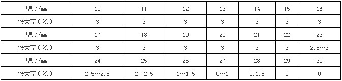 壁厚与长大率之间的关系如表1所示,表2位典型实例。