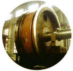 济宁二号煤矿主井导向轮直径为3500mm,由1个固定轮和5个活动轮组成,轮轴直径为330mm,轮轴长度为2550mm,总重量为22956kg,外形尺寸为4122×2880×3825mm。自主井提升系统投入使用,导向轮一直在运行,没有进行过拆卸、修理、更换零件。目前运行时噪音较大,各轮轮缘均有不同程度的偏摆现象,并有明显的径向跳动和轴向游动现象。为消除隐患,需要对导向轮进行更换。更换导向轮时受提升绳及导向轮基础座、空间狭小等影响,施工难度大,在对现场及图纸多次研究讨论后,Z终确定了可行的施工方案。