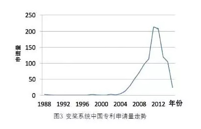 图3显示了风电机组变桨系统领域中国专利申请量的发展趋势。
