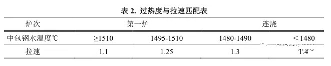 根据GCr15轴承钢凝固特性,选用小锥度结晶器,结晶器水量:110m3/h;二冷使用弱冷,比水量0.3L/kg,确保铸坯矫直温度大于920℃;拉矫机压力≤2.5Mpa;12个流拉钢,拉速控制见表2。
