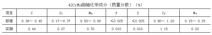 选取上图中有裂纹的曲轴,在其主轴中心应用直读光谱仪Q6(COLUMBUS)分析材料化学成分,分析结果见附表。