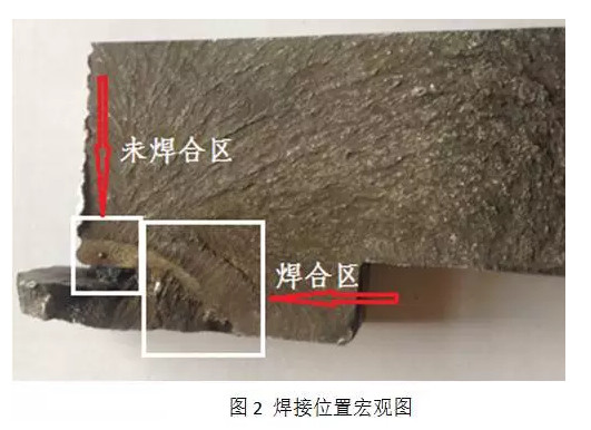 对裂纹源位置进行解剖,并制取试样,如图2所示。