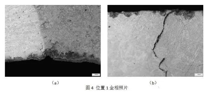 经过对位置1和位置2的裂纹的观察与应力分析,可以判断在焊接过程中,焊缝中有富集氢的因素,加之冷却速度较快,在焊接残余拉应力的作用下,残留在焊缝中的氢回向热影响区和母材区扩散。而且热影响区的粗大马氏体组织对氢脆极为敏感而发生氢致开裂,产生裂纹。同时,在马氏体相变的组织膨胀拉应力的作用下,裂纹迅速扩展,Z终导致钢背在切除外侧多余钢板后断裂。
