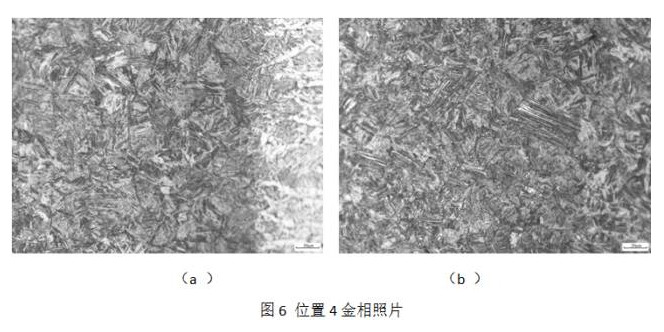 由图6可以看出在焊缝热影响区也出现了粗大马氏体组织,且全马氏体区厚度为0.3mm,在向基体过渡位置出现了马氏体+上贝氏体的混合组织,该区域组织的强韧性均较低,且存在较多的空位、位错等晶格缺陷,在应力作用下易在薄弱位置形成裂纹源。