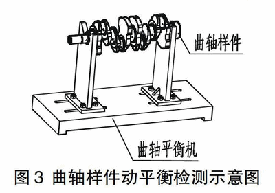 ⑹将拆分开后的曲轴飞轮组件中的曲轴样件安装在曲轴动平衡机上,测量其动不平衡量,示意图见图3;