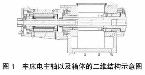 一个铣床的主轴温度场的形成,主要是铣床在自身运转过程中产生的热量以及外部环境所携带的热量共同组成了热能量场。因此铣床主轴的结构对整个数控铣床的热误差有着直接的关系。而主轴部件机构在高速运转的过程中其产生的热量会逐渐的进行传递,下图1标注的是车床电主轴以及箱体的二维结构示意图。