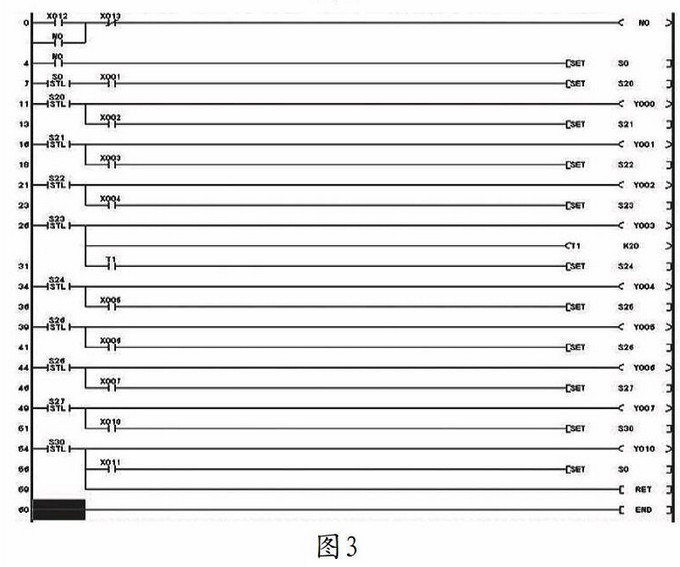 根据上面的状态转换方框图及工作原理,可以直接用步进梯形图或步进指令表,直接将程序输入控制器PLC,并完成调试,相应的梯形图在文末。