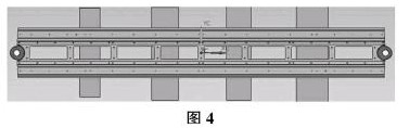 该零件是导轨件要求高。采用四处等高工装过度装夹尽量一次加工完成保证达到图纸要求。第二次装夹图如图4。