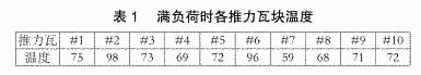薛村电厂两台汽轮机均为南京汽轮电机(集团)有限公司生产,型号C25-4.90/0.490,次高压、单缸、单抽冲动式。以此机组为例,经常出现的问题时某块推力瓦温度偏高。具体特征为:个别瓦块温度过高,其他瓦块温度正常,而且偏高点随着负荷的变化而慢慢进行改变。满负荷时推力瓦各瓦块的温度如下表1所示。