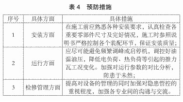 在汽轮机的应用中Z有效且风险Z低的方法是按规范要求对汽轮机进行检修,严把工程质量关,防微杜渐,即使再微小的问题也要及时解决,避免小问题造成大危险,防患于未然。本文建议主要在三各方面采取措施来进行预防,如表4所示。