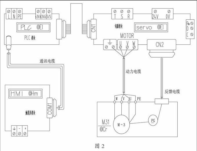 本设备上位机为台达公司的DVP系列PLC,前端配DOP系列触摸屏作为人机界面,由A2驱动器控制一台ECMA电机拖动砂轮横向运动,结构如图2所示。