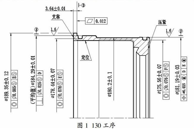 外圆尺寸Φ181.19±0.03和Φ184.29±0.01在130工序数车加工,如图1所示。零件外圆的椭圆较大,造成局部超差。