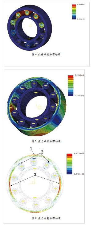 (1)图中1区域由于此处承载力Z大,导致应力也较大,但由于轴承外圈是不断旋转运动的,所以此部分的应力是较大的交变载荷。
