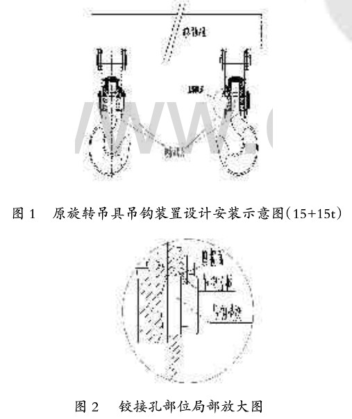 1.现状。本公司150吨转炉15+15t行车旋转吊梁底部安装两套20t吊钩装置,由于现场吊具使用频繁,在使用过程中造成吊钩立板轴孔和吊钩横梁相对磨损报废,使用周期只有3个月左右。