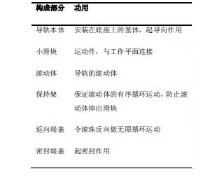 表1 传统滚动导轨构成及功用