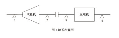 图中:1#、2#轴承支撑汽轮机转子,3#、4#轴承支撑发电机转子,其中1#轴承是推力-支撑联合轴承。