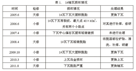 1#轴瓦的损坏情况如表1所示:
