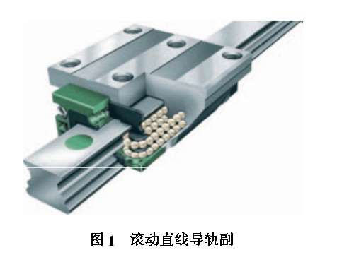 滚动直线导轨副一般由轨道、滑块、反向器、滚动体、保持器、润滑器和防尘板等组成,是一种作相对往复直线运动的滚动支撑,能以滑块和轨道间的钢球滚动代替直线的滑动接触,并且滚动体可以借助反向器在滚道和滑块内实现无线循环[1]。