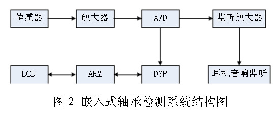 传统的基于PC机的滚动轴承检测系统体积大、耗电量大、安装调配复杂,其应用范围非常有限,基于DSP和ARM的嵌入式轴承检测系统日益开发出来,并且得到广泛应用。