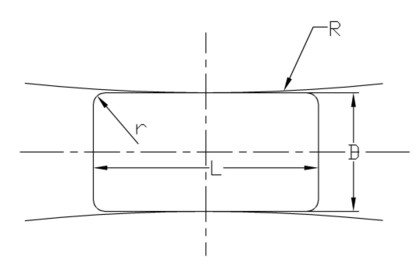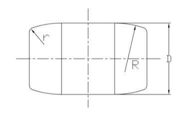 滚子凸度可以是Z简单的完全圆弧(如图二),也可以是部分凸度(如图三)。大多数圆柱滚子轴承滚子轮廓一部分带凸度,其余还是圆柱面。为了尽可能地降低应力集中,在圆柱面与凸起部分用相切曲线来取代圆弧。