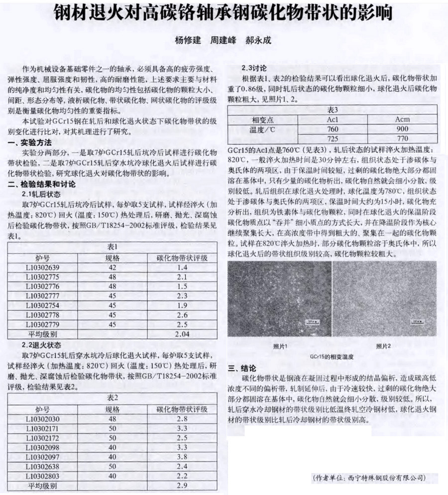 钢材退火对高碳铬轴承钢碳化物带状的影响
