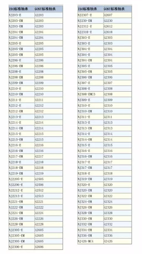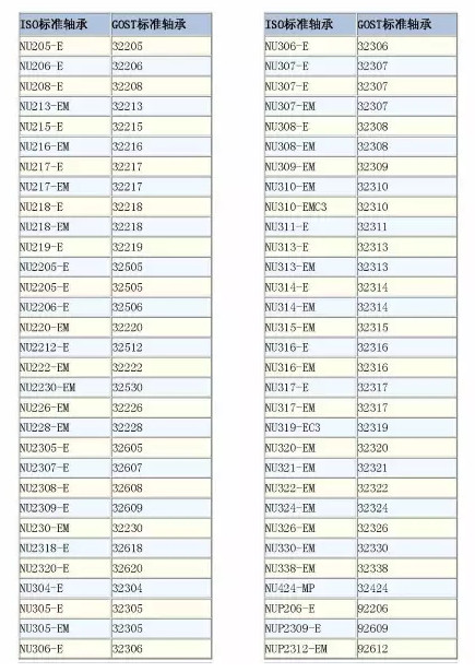 ISO/GOST标准轴承代码对照表
