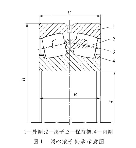 如图1所示,调心滚子轴承具有2列球面滚子,主要承受径向载荷,广泛应用于水泥、风电、冶金、造纸、减速机等行业。调心滚子轴承的旋转精度[1]不仅影响轴承运转时的工作性能及被支承零件的旋转精度,而且反映了轴承的制造精度。为保证轴承安装后具有合适的旋转精度,就必须控制和检测调心滚子轴承的内圈径向跳动Kia和外圈径向跳动Kea[2]。