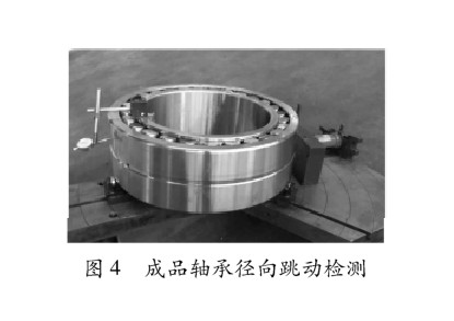 专用检测平台对特大型调心滚子成品径向跳动的检测数值可以反映轴承的实际旋转精度,检测方法方便、可靠,可以满足制造过程和客户需要,有推广使用价值。另外,该方法也可推广至特大型圆柱滚子轴承成品径向跳动的检测。