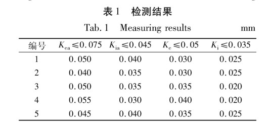 以239/750CA/W33成品轴承为例,将检测平台倾斜45°并微调轴承支承装置后,将不同编号的轴承分别放置在检测平台上进行测量,测量示意图如图4所示。成品轴承径向跳动量与零件厚度变动量(Ki和Ke)的对比结果见表1,由表可知此检测方法可以反映轴承的旋转精度。