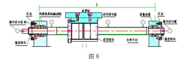 首先把被拉端轴承按紧固力紧固到位,即把伺服电机端轴承座内的轴承装配好,消除轴承的游隙,拉伸端螺母轻紧到位,如图六。拉伸的计算与方法。