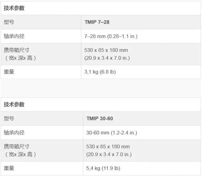 ·有两种不同的套件,适用于7-28mm和30–60mm的轴承孔。
