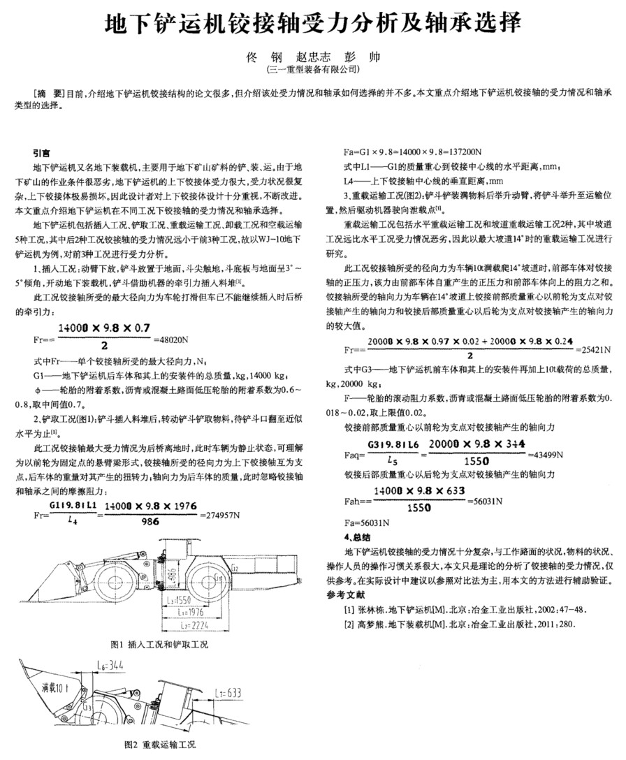 地下铲运机铰接轴受力分析及轴承选择