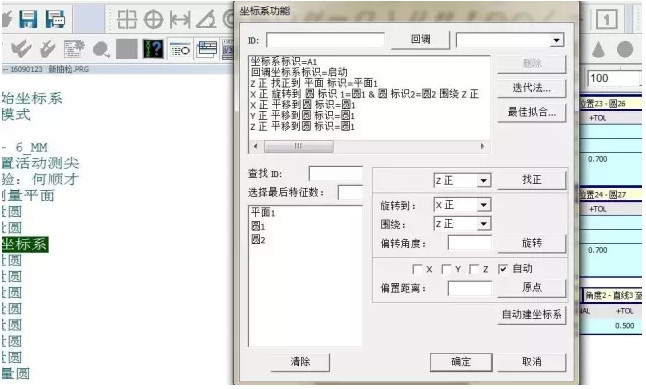 坐标系建立完成后可以检验是否正确,将基准圆测量看X/Y/Z方向的值是否为“0”。