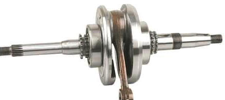 (2)曲轴弯曲情况的检测:将曲轴放在检验平板的V形架上,将百分表触头垂直地触及中间一道主轴颈,转动曲轴,此时百分表指针指示的Z大摆差即为曲轴主轴颈的径向跳动值。要求偏差不大于0.03mm,否则予以校正。