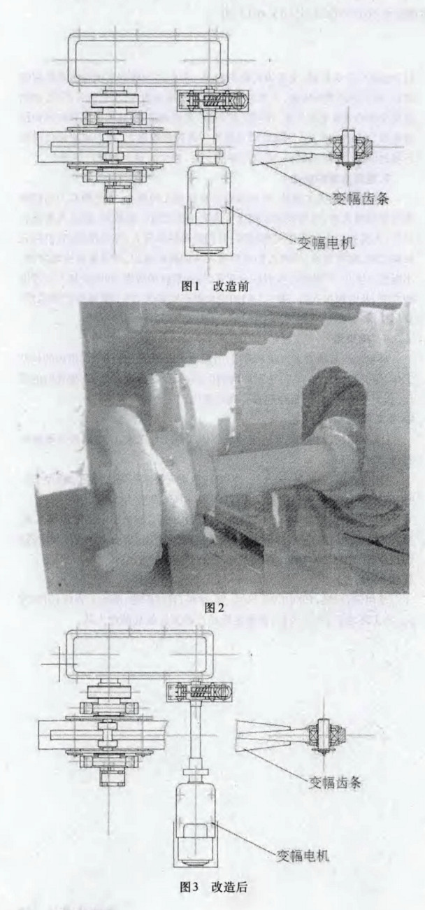 此种改造方法只需将传动轴的长度增加加20mm同时将电机位置随着传动轴的延长后移即可,不改变其他设备的位置及性能,改造成本低,同时避免了因限位失灵或者制动器制动效果不好而造成变幅齿条与联轴节相卡影响门机性能的问题,堪称是小改革,大效益,是一种有益的改造方式,可大力推广。