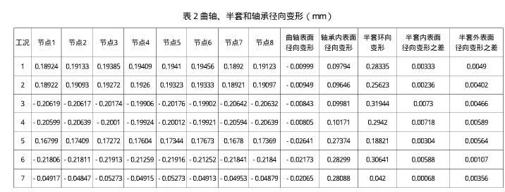 通过对第二节中曲轴、半套和轴承的变形和接触压力结果进行分析,可得到如下结论: