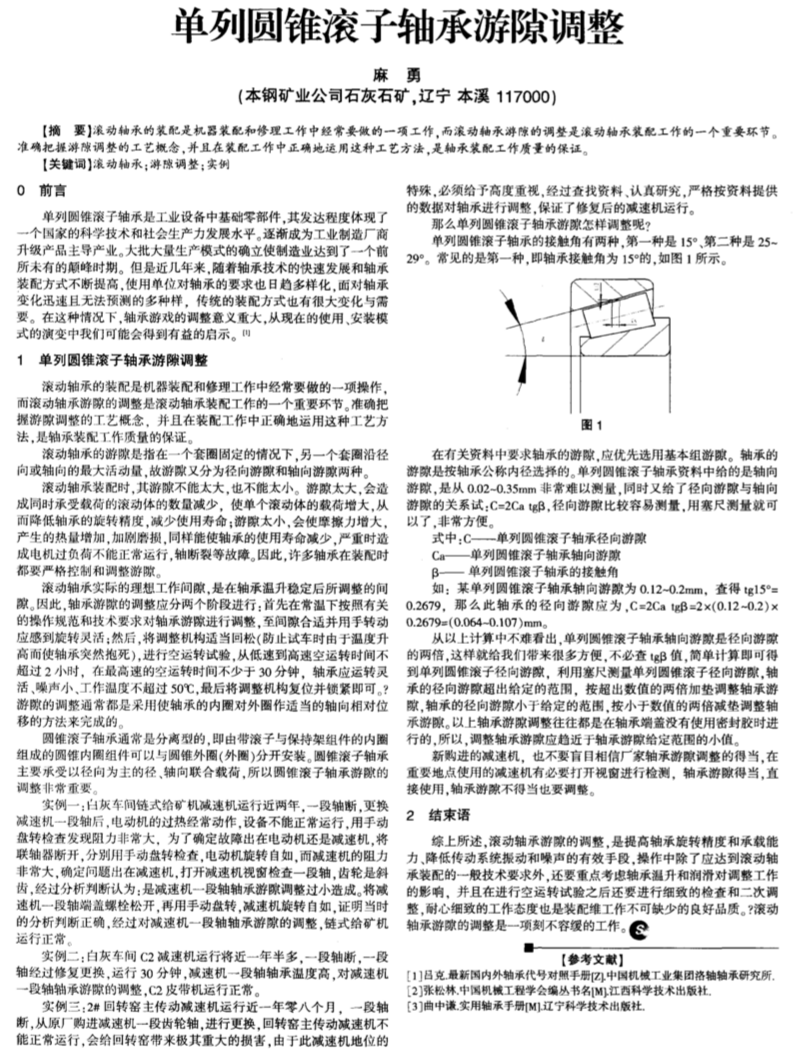 单列圆锥滚子轴承游隙调整