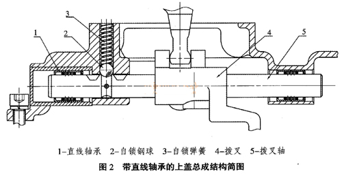 带直线轴承的拨叉轴安装方式如图2所示。