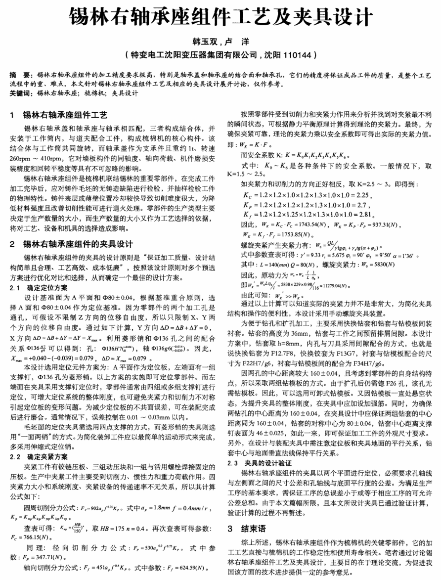 锡林右轴承座组件工艺及夹具设计