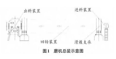 某厂双滑履磨水泥磨规格为中4.4m×15m,磨机总装示意图见图1,至今生产5年。自生产之初,出料端托瓦温度一直较高,设定磨机Z高的跳停温度为93℃,这台水泥磨的托瓦温度不能稳定下来,使水泥生产不能连续进行,尤其是生产52.5水泥(因其为特种水泥,比表面积高于同标号普通水泥)的时候,磨经常因瓦温超过限定值而跳停。