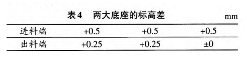 检查双滑履水泥磨两大底座的标高差,见表4。