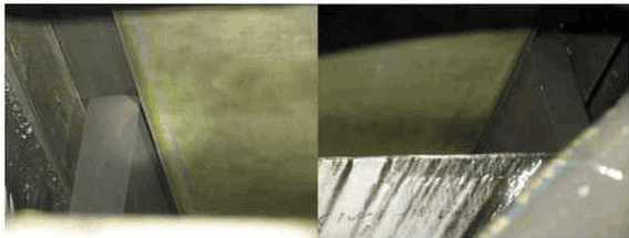 减速机输出轴的窜动量由两部分组成,一个是磨机的热膨胀和机械偏差所造成的位移,另一个就是减速机联轴器的伸长量。一般减速机设计,输出轴和齿轮在减速机中是固定的,磨机所产生的热膨胀和机械偏差由联轴器承担,只有力矩传递给减速机,磨机和减速机互不干扰,只有在磨机挡板磨损过大,磨机偏移超过联轴器的许用值时才对减速机有影响。检查磨机固定轴承的滑履和铜夹板之间的间隙,从以下照片看,照片1显示其在磨头侧方向有3.5mm的间隙,照片2显示在磨尾侧几乎没有间隙,且由于两侧的铜夹板没有任何磨损的痕迹,而且,从业主操作人员反映的情况看,滑履的温度从未超过50度,大部分时间都是在40度以下,这就充分说明磨机本体没有任何窜动,特别是向磨尾方向更是不可能有窜动。